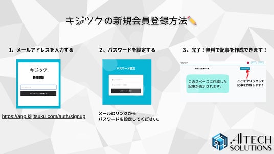 株式会社AI Tech Solutionsは、生成AIを活用したプロダクト「キジツク」をローンチしたことをお知らせします。