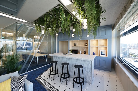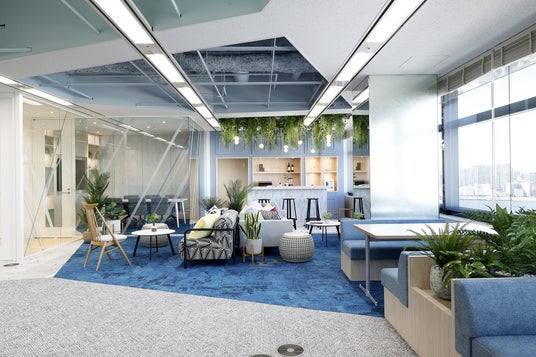 本オフィスは、東京ベイの素晴らしい景観を眺められるオフィスであり、「Azure」をコンセプトとし、澄み切った空色、煌めく海色、通り抜ける風色、といったお台場の「Azure」を感じる空間を創造しています。