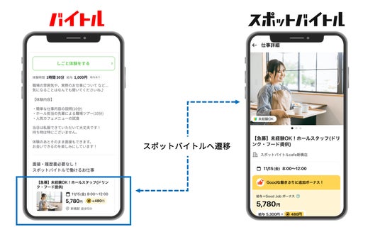 当社が運営する日本最大級のアルバイト・パート求人情報サイト「バイトル」の「しごと体験」機能に「スポットバイトル」の求人情報を連携いたします。