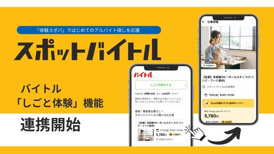 ディップ株式会社(以下「当社」)が展開する「Good Job ボーナス」を搭載したスポットのバイトサービス「スポットバイトル」(※1)は、「バイトル」の「しごと体験」と連携(以下「本連携」)を開始いたしました。