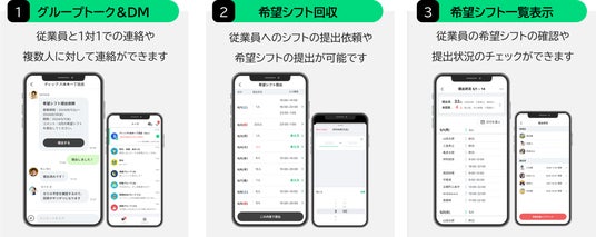 アルバイト従業員とのトーク、希望シフトの回収、希望シフトの一覧表示をご利用いただけます。