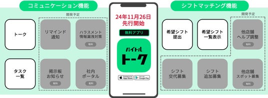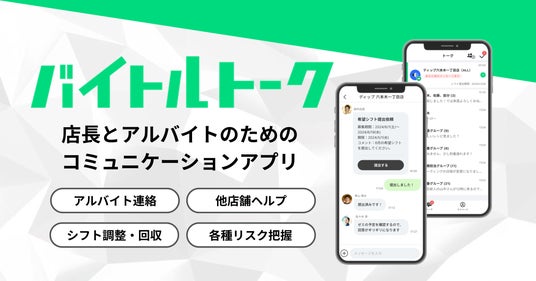 ディップ株式会社(以下「当社」)は、株式会社アイリッジ(東京証券取引所グロース:3917、以下「アイリッジ」)と共同で、店舗管理者とアルバイト従業員のコミュニケーションを改善する新サービス「バイトルトーク」(以下「本サービス」)を開発し、本日よりサービスを先行開始しました。