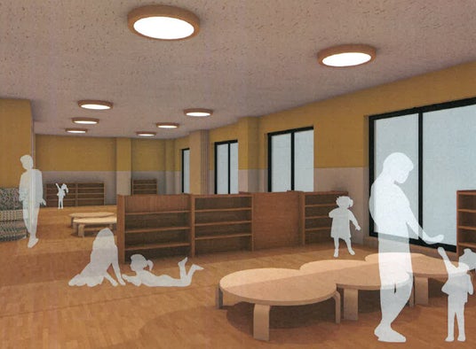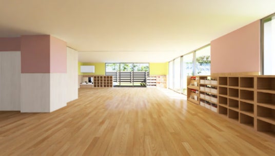 【デザインポイント】子どもたちが安心して過ごせる「お家のような温かさと安心感」を感じることのできる空間。温かみのある木材やナチュラルな素材を使いアットホームな雰囲気を造りだし、家で子どもたちと過ごすような居心地の良さを感じさせます。ナチュラルなフローリングは、木の温かみやぬくもりを空間全体に広げ、子どもたちがリラックスできる環境を演出します。子どもたちが自分のペースで成長し、創造力を育むための「もうひとつの家」として、安心感を持てる空間造りをめざします。