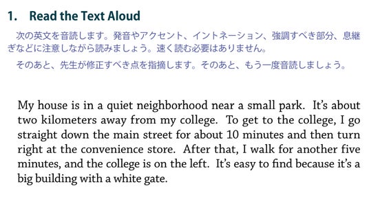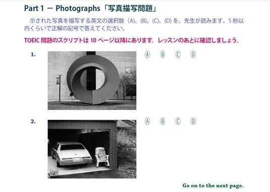 このためのトレーニングとしてレッスンテキストの中では、TOEICのPart1の出題に相当するベーシックな内容を、受講生自身が話せるように練習するパートがあります。「TOEICで点が取れても話せない」とならないよう、スピーキングにつながる力も身に付けていくことができます。