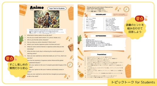 産経ヒューマンラーニング株式会社(本社:東京都新宿区、代表取締役:中谷友紀、以下「当社」)が提供するオンライン英会話教材「トピックトーク」において、中学生・高校生向けの新シリーズ「トピックトーク for students」を新たにリリースいたしました。