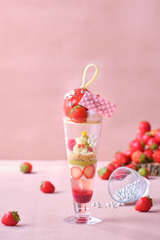 また、ホワイトベアやピスタチオクリームのクリスマスツリー、ツリーに飾るデコレーションをイメージしたベリーなど小さく可愛らしいオブジェを閉じ込め、雪が降りしきるクリスマスを表現しています。