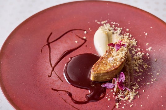 フォアグラのポワレとラディッキオ 根セロリのピュレとソース・エイグルドゥー ノワゼットのアクセント