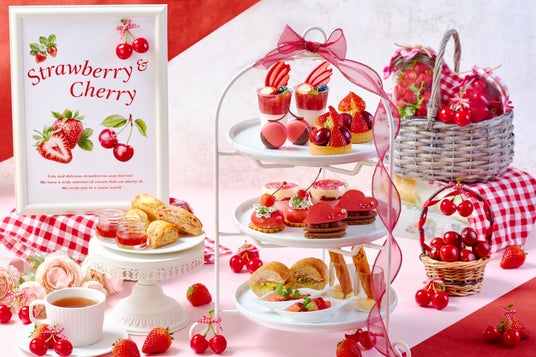 さらに、2つ揃うとまるでちょこんと寄り添う双子の果実のようなチェリーのマカロンや、濃厚なマスカルポーネと甘酸っぱいいちごが相性抜群のムースなど、パティシエ特製の全7種のスイーツ、3種の軽食、焼き立てのスコーン2種をご堪能いただけます。