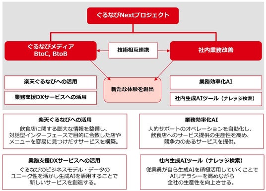 ぐるなびは、生成AIを活用してぐるなび全体の技術革新・DXを実現する「ぐるなびNextプロジェクト」を2024年8月より本格的に推進し、メディアの強化、業務改善、さらに生産性向上を目的とした様々な施策を短期間で進めてきました。今後も、「食でつなぐ。人を満たす。」というぐるなびのPURPOSE(存在意義)のもと、社内外におけるAIの活用を拡充し、「次世代食体験の実現」と「圧倒的な業務効率化」を目指します。