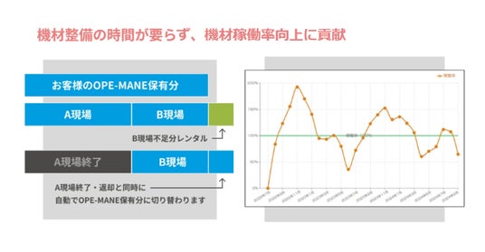 このプラットフォームで提供するサービスの一つが、機材管理サービス『OPE-MANE(R)』です。工事現場では足場調達の約95%をレンタルが占めており(当社調べ)、足場の確保が重要課題となっています。足場業界は、資材価格の高騰・物流トラック不足の影響で、将来的に一定量の足場の調達が困難になり「足場がない」ことによる工事遅延のリスクが懸念されます。