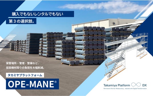 足場をはじめとする建設業界のプラットフォーマーとして、業界課題に革新的なソリューションを創造しつづける株式会社タカミヤ(以下タカミヤ、本社:大阪市北区、代表取締役会長兼社長:高宮一雅)は、足場管理サービス『OPE-MANE(オペマネ)』のサービスページを公開しました。