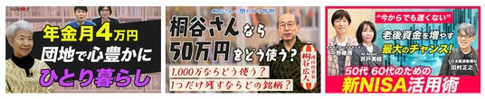 また、「株主優待生活で著名な桐谷広人さんに聞く楽しみな優待銘柄」や「1億円以上の資産を築かれた方のリアルなお話」、「年金生活をより豊かにするためのヒント」といった著名人やマネー賢者が出演する動画も配信中。見れば見るほどお金に詳しくなり、お金との付き合い方が分かることで、暮らしが楽になるコンテンツを提供しています。