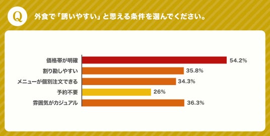 5. 外食で「誘いやすい」と思う条件、最多は“価格帯が明確であること