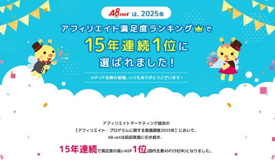 A8.net ASP満足度1位15年連続受賞記念ページ:https://support.a8.net/as/camp/asp2025/