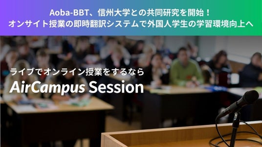 株式会社Aoba-BBT(所在地:東京都千代田区、代表取締役:柴田巌、以下「Aoba-BBT」)は、国立大学法人信州大学と共同で、外国人学生の学習環境を向上させるオンサイト授業の即時AI翻訳システム AirCampus Session 字幕チャンネルの開発に関する研究を開始いたします。