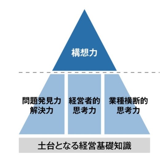 本プログラムの基礎となる経営知識を土台とし、ゼロから新たな価値を創出する力や見えない未来を視覚化する力を養うことで、参加者は現場で即応可能なスキルを身につけます。
