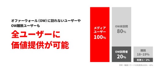メディアは広告主から広告費用が支払われることで、広告収益という基盤を作ることができ、かつユーザーは課金以外の方法で有料サービスとの接点を持つことが可能となります。リワード広告およびオファーウォールは、こうした双方のメリットを実現するフォーマットとして長きにわたりスマートフォンアプリ市場で支持を得てきました。