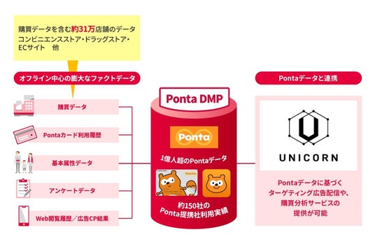 今回の協業により、UNICORNを利用する広告主は、Ponta IDに連携した膨大な消費者の購買履歴に基づいた広告のターゲティング配信や、購買計測の支援を受けることが可能になります。