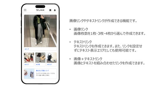 ・SNSだけでなく、自身のブログやお気に入りのWebサイトを登録できる「リンク作成機能」が追加されました。リンクはテキストでも画像でも自由に設定可能。自分好みの形で掲載できます。
