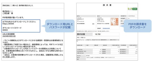 お取引先様に届くメール画面とダウンロードした請求書のイメージ