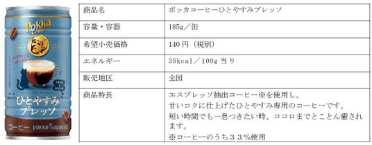 ほどよい甘さや香りでココロ癒されるひとときを「ポッカコーヒー」ブランドをリニューアル、新商品「ポッカコーヒーひとやすみプレッソ」2024年9月9日(月)より全国で発売