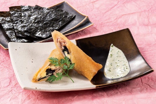 磯の香り豊かな「大野海苔」がジューシーで口溶けの良い「阿波美豚」の味わいを引き立たせるチーズ春巻き。酸味の効いたすだちマヨネーズでお召し上がりください。