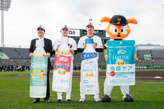 これに伴い、今シーズンの読売巨人軍の活躍を祈念し、選手の体調管理を支援するため、春季キャンプ地にて2025年2月3日(月)に「キリン iMUSE(イミューズ) ヨーグルトテイスト」「キリン iMUSE レモン」「キリン iMUSE グリーン」「キリン iMUSE 免疫ケアウォーター」を計4,800本贈呈しました。さらに契約期間中である2025年2月1日(土)から2025年11月30日(日)には、「小岩井 免疫ケアのむヨーグルト」「キリン iMUSE 免疫ケアサプリメント」を随時提供します。