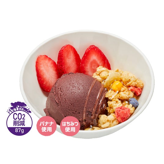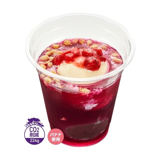 各スイーツには、アサイーとピタヤの原料の生産および日本への輸送過程で吸収・排出されたCO2量から算出した値を一製品あたりの配合量に応じ削減量として換算した「CO2削減マーク」が表示されています。