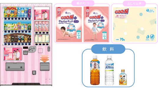 本自販機は、国土交通省から子育て応援施設の整備を加速していくことが発表されたことを受け、当社、大王製紙株式会社、セコム医療システム株式会社の3社で子育て世代を応援するための取り組みとして、道の駅や大型商業施設などに展開し、現在は44都道府県に約720台展開しております。