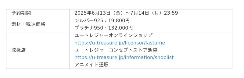 株式会社ユートレジャー(本社:東京都新宿区、代表取締役社長:青木 興一、株式会社ケイ・ウノの連結子会社)は、TVアニメ「悲劇の元凶となる最強外道ラスボス女王は民の為に尽くします。」とコラボレーションアイテム「プライド バースデイ ネックレス」の予約受付を2025年6月13日(金)~7月14日(月)の期間、ユートレジャーオンラインショップ、ユートレジャーコンセプトストア池袋にて行います。