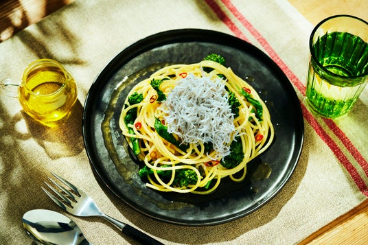 おすすめレシピ 「旬の青菜と釜揚げしらすのペペロンチーノ」