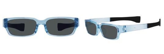 タウンユースにもアクティブシーンにも使える、スポーティなデザインのサングラス。テンプルはZoff CLAP CLICK構造(ヘアピンクリップのような構造のテンプル部分が、後頭部に巻き付くようにフィットする)を搭載しており、ずれにくい設計です。