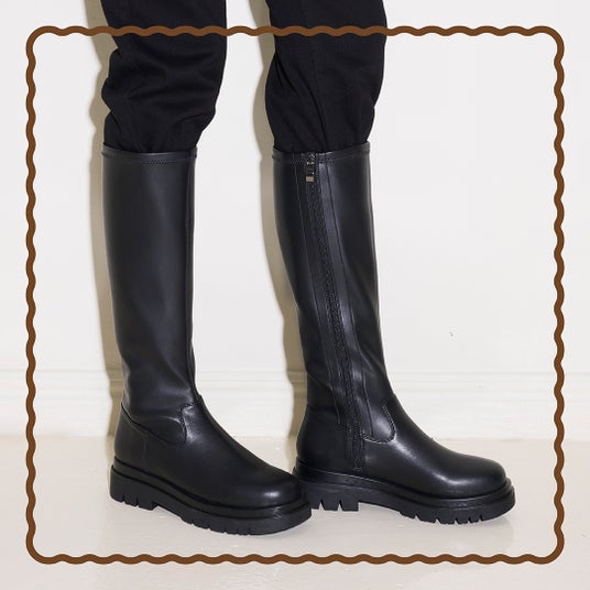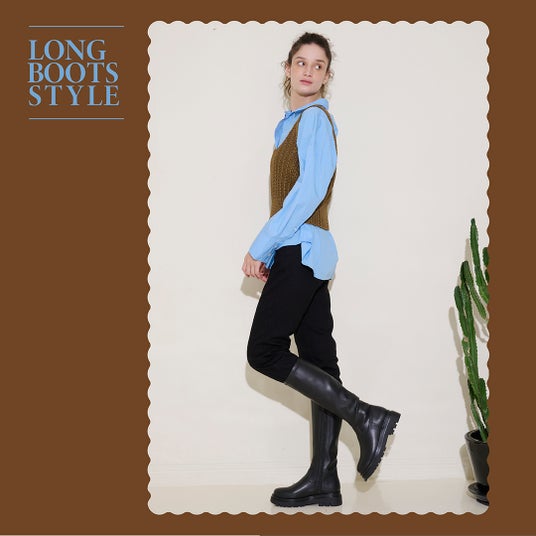 ボリューミーなトラックソールにスクエア気味のトゥが魅力のロングブーツ。シンプルなデザインなので丈感と筒周りのサイジングにこだわりました。インサイドにはファスナーもついており、ボトムインも可能です。ミニ丈のボトムスとも相性ばっちりです。