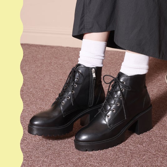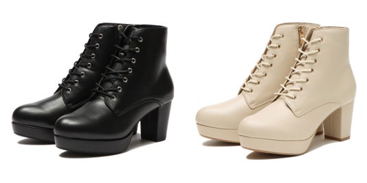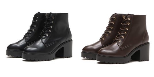 上品なデザインで高見えする厚底レースアップブーツ。光沢感のある素材や、こだわりのスッキリシルエットで足元を大人っぽく演出してくれます。スカートにもパンツにもバランスのとりやすい絶妙な丈感です。ヒールは高めでスタイルアップ効果も抜群。チャンキーヒールなので安定感もあります。