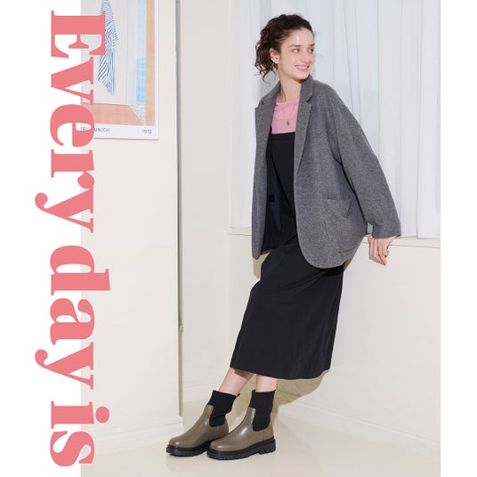 ボリュームソールに加え、足にフィットする細身ラインのニットブーツ。子どもっぽくなりがちなトラックソールも、細見えなシルエットで大人らしく履きこなせます。履き口のリブニットは伸縮性があるため、脱ぎ履きもスムーズに行えます。パンツスタイルはもちろん、スカートやワンピースに合わせて外しアイテムとしてもピッタリです。