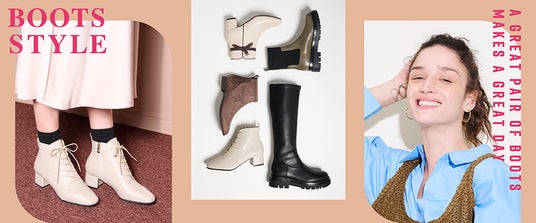 涼しくなりつつあるこれからの秋冬シーズンには、スカートやパンツ、ワンピースなどどんなコーディネートにも合わせやすい、レディースブーツが大活躍。今年のラインナップには、クラシカルで定番のデザインから、最旬トレンドデザインも豊富に取り揃えています。足をきれいに見せ、スタイルアップができる厚底や、重くなりがちな秋冬のファッションにアクセントを加えるレースアップ、コーディネートの幅を広げるロングブーツなど、様々なタイプをご用意。そして高級感のあるブラックから、品のあるブラウン系まで使い勝手の良いカラーリングからお好みやスタイルに合わせてお選びいただけます。