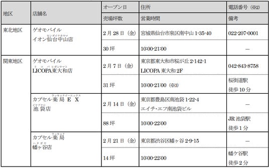 「カプセル楽局」4店舗を含む、合計13店舗が新たにオープン!