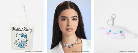 ハートの後ろから覗いたキティがデザインされたワッペンニット、キティとリボンがボタンになったブルーカーディガン、ハートとリボンの装飾が可愛いネックレスなどサンリオ好きな方はもちろん、「FOREVER 21」が好きな方にも必見のコレクションアイテムです。