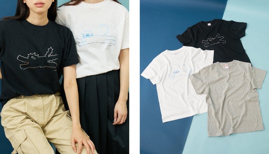 「umao」が描くネコのイラストを、きらっとした箔で表現したプリントTシャツ。