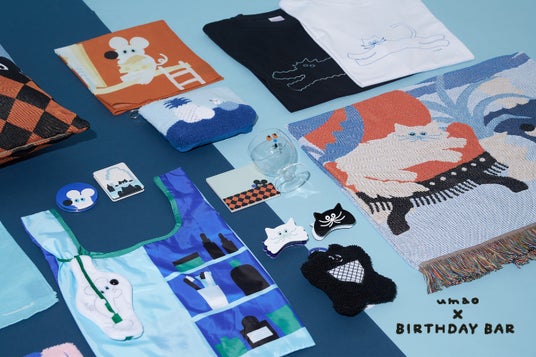 さわやかな青とかわいらしい動物が描かれた「umao」の世界観をそのまま表現したアイテムとなっております。これらはすべてBIRTHDAY BARでしか買えないオリジナルアイテム。日常生活にアートを取り入れて、「umao」の世界観を楽しんでみてはいかがですか?