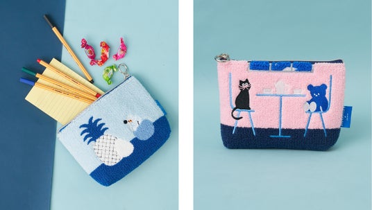 「umao」の世界観溢れるイラストを大きく描いた手帳サイズのポーチ。あたたかみのあるさがら刺繍の素材感がポイントです。大きめサイズなので、毎日使う小物類をまとめておくのにもぴったりです。