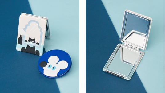 「umao」の代表的なイラストのねずみとネコが描かれたコンパクトミラー。
