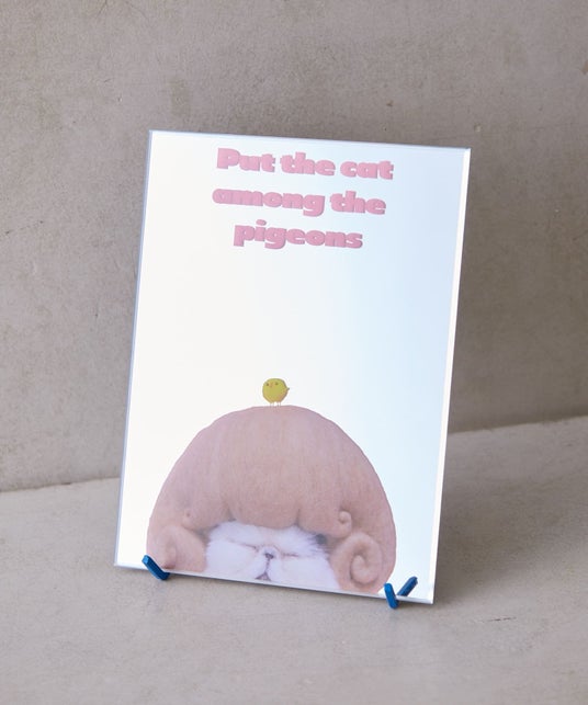 ブルーのスタンドとピンクのロゴのバランスが相性良く、その間に愛らしい表情の猫が入ることで更に可愛さアップ!「ずー」と一緒に写真も撮れる、楽しいミラーです。