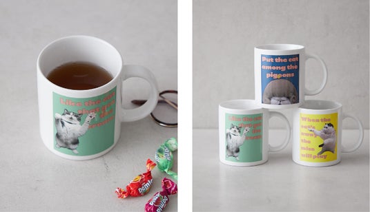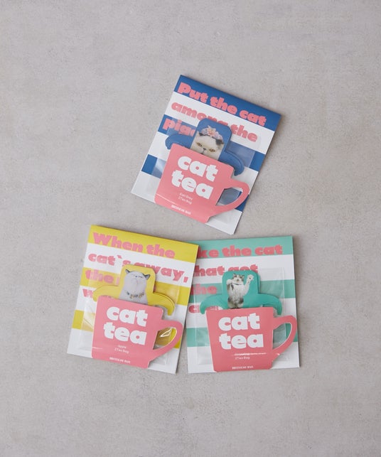 マグカップのふちにかけて楽しめるティーバッグ。猫好きさんにはたまらないアイテムです。
