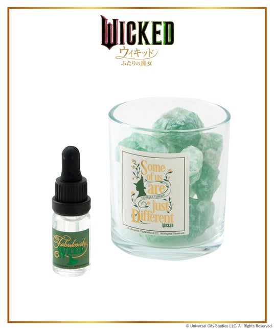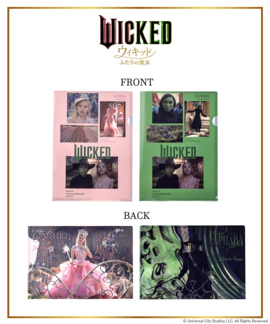 今回のコラボレーションでは、“エルファバ”と“グリンダ”のイメージカラーであるグリーンとピンクを基調とした「ELPHABA&GLINDA DESIGN」や劇中シーンを使用した「MOVIE DESIGN」に加えて、エメラルドシティ、シズ大学、マンチキンランドをモチーフにした「CITY DESIGN」、『WICKED』のロゴを使用しスタイリッシュに仕上げた「WICKED DESIGN」で全26種類のアイテムをご用意しました。