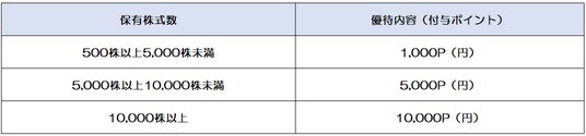・長期間保有に対する優遇措置:保有期間3年以上5年未満の株主さまにポイント1.5倍付与
