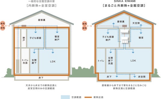 株式会社サーラコーポレーション(本社:愛知県豊橋市、代表取締役社長:神野吾郎)の連結子会社で、愛知県全域および静岡県遠州・三重県東部・岐阜県南部地域において住宅事業を手掛けるサーラ住宅株式会社(本社:愛知県豊橋市、代表取締役社長:大場吉恭)は、2050年のカーボンニュートラルの実現に向け、住まいの快適性・省エネ性・環境配慮を追求するために、国内最高水準の断熱性能(最高等級7)に対応し、家庭用エアコン1台で家中にここちよい空気を循環させる全館空調システムに加湿機能を搭載した注文住宅のフラッグシップ商品「SINKA KIWAMI(シンカ キワミ)」を2025年1月1日より販売開始します。