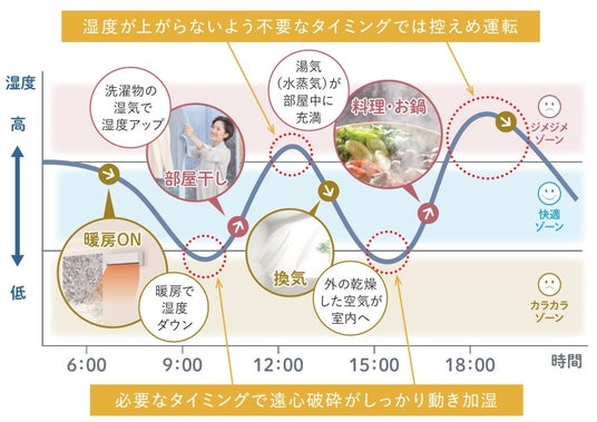 (3)家中の湿度を40~60%にキープする「加湿システム※3」を搭載し、空気質にこだわった極上の住みごこち