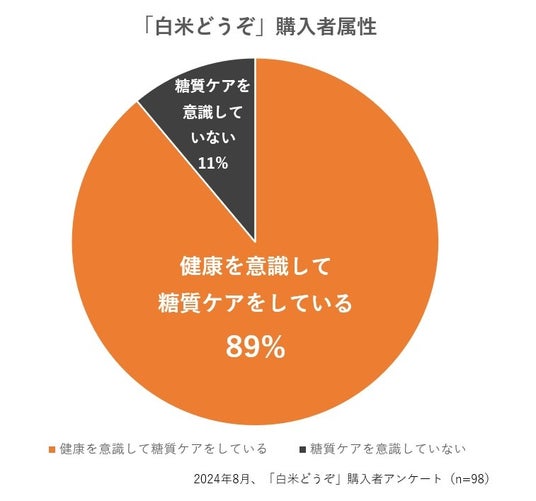 「白米どうぞ(R)」発売後、購入者にアンケートを取った結果、全体の約9割(89%)が健康を意識して糖質ケアをしていることがわかりました。また購入者の約2割がリピートし、さらにその内の82%が定期購入者となっていることから、満足度の高さが伺えます。