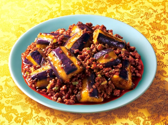 <極 香辣麻婆茄子用>はたっぷりの生姜と鎮江香酢の芳醇な香りと、辣醤のキレのある辛さが特長のソースです。茄子をしま目に剥き、揚げ焼きにすることで、口に入れた瞬間、ソースが絡んだ茄子がじゅわっととろける、やみつきになるおいしさです。ソースの味わいは、本場四川の魚香茄子(ユーシャンチェズ)にならったものです。
